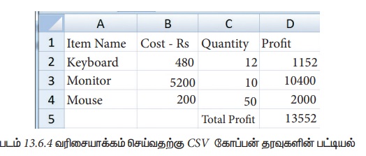 படித்தல், எழுதுதல் மற்றும் பல செயல்பாடுகளை செய்வதற்கு CSV-ன் நூலகமானது பொருட்கள்