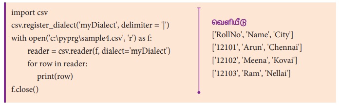 புதிய Dialects ஐ பதிவு செய்து DictReader() செயற்கூறில் நாம்