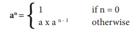 இந்த தற்சுழற்சி வரையறையை, power (a, n) யைக் கணக்கிடுவதற்கான தற்சுழற்சி தீர்ப்பாகப் பின்வருமாறு எழுதலாம். power (a, n)