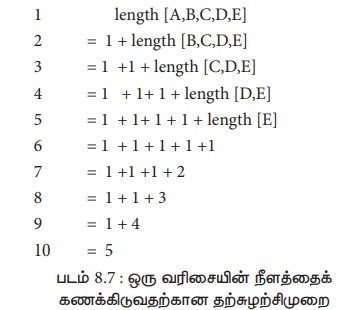 1 + length (tail (s)) - - தற்சுழற்சி படிநிலை