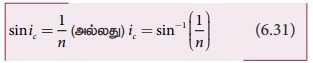 மாறுநிலைக்கோணம் ic ஊடகத்தின் ஒளிவிலகல்