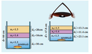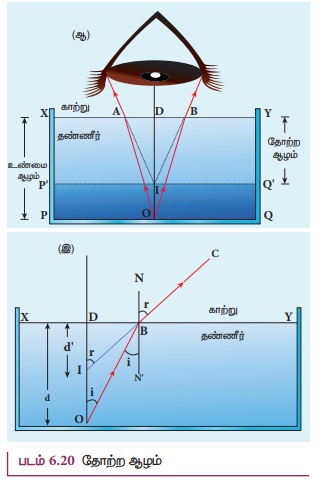 செய்து கொள்ளும். எனவே DO என்பது உண்மையான ஆழம் (d) மற்றும் DI என்பது தோற்ற ஆழம்