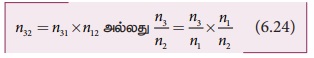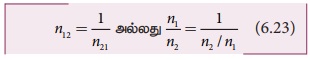 ஸ்னெல் விதி சமன்பாட்டிலுள்ள(n2/n1)பதத்திற்கு