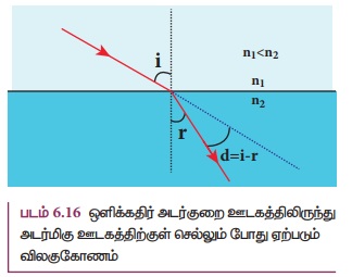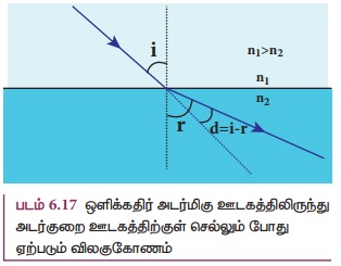 விலகிச் செல்கிறது. இதன் காரணமாக அடர் குறை ஊடகத்தில் விலகுகோணம் (r), அடர்மிகு ஊடகத்தில்