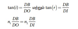 (r) ஆகும். கோணங்கள் (i) மற்றும் (r) இரண்டும் மிகவும் சிறியவை. எனவே, பொருள் O விலிருந்து