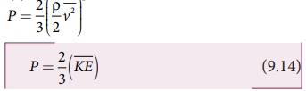 சமன்பாடு (9.14) இல் இருந்து, அழுத்தம் என்பது ஓரலகு பருமனுள்ள வாயுவின் சராசரி இயக்க ஆற்றலின் மூன்றில் இரண்டு பங்கிற்குச் சமம் என அறியலாம்.