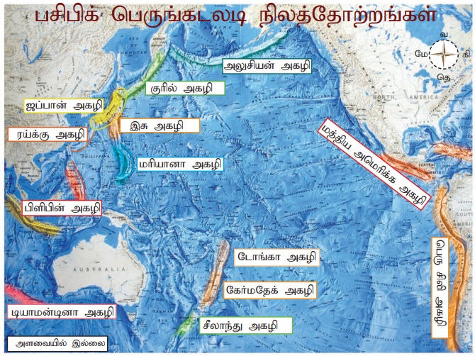 பெருங்கடலில் 22 அகழிகளும் காணப்படுகின்றன.