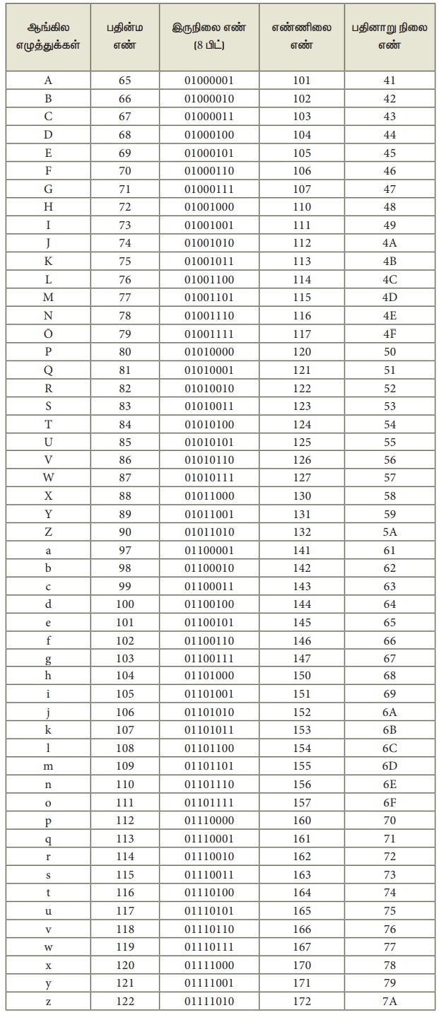 எண் முறைகள் | கணினி அறிவியல் - நினைவகத்தில் எழுத்துருக்களின் பிரதியீடுகள் | 11th Computer Science : Chapter 2 : Number Systems
