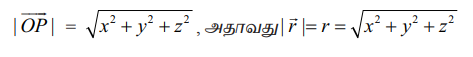 இதுவே O−வைப் பொறுத்த முப்பரிமாண வெளியில் P−ன் நிலை வெக்டர் ஆகும். முக்கோணம் ORQ−ல்