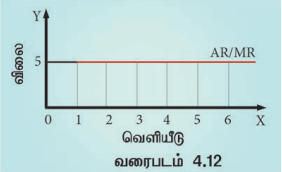 மாறாத விலையில் AR மற்றும் MR வளைகோடானது கீழ்காணும் அட்டவணை 4.10 மற்றும் வரைபடம் 4.12 இல் காட்டப்பட்டுள்ளது.-