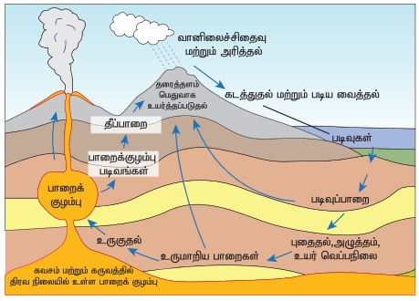 கொடுக்கப்பட்டுள்ள பாறைச் சுழற்சி வரை படத்தை உற்று நோக்கி அதன் செயல்பாடுகளை உன் சொந்த வாக்கியத்தில் விவரி