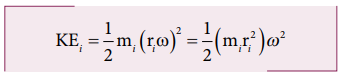 சுழலும் அச்சிலிருந்து mi, நிறையுடன் ri தொலைவில் உள்ள துகளைக் கருதுக. இந்தத் துகள் கீழ்க்கண்ட சமன்பாட்டின் vi = ri ω தொடுகோட்டுத் திசைவேகம் கொண்டிருந்தால் அத்துகளின் இயக்க ஆற்றல்,