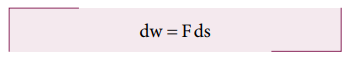 இந்தத் தொடுகோட்டு விசை F ஆனது பொருளைச் சிறிய அளவில் இடப்பெயர்ச்சி (ds) செய்கிறது. விசையினால் செய்யப்பட்ட வேலை (dW)