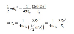 அணுக்கரு ஆகிய இரண்டிற்கும் இடையே உள்ள சிறும தொலைவு மீச்சிறுஅணுகு தொலைவு' r0