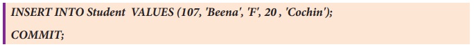 பின்வரும் தரவைக் கொண்ட மாணவர் அட்டவணையில் COMMIT,
