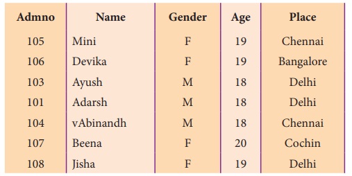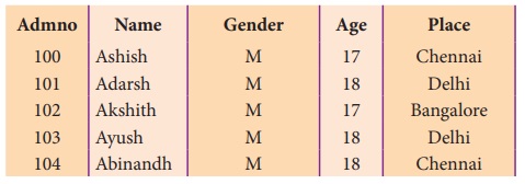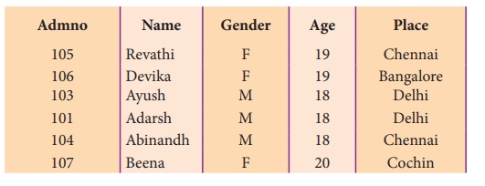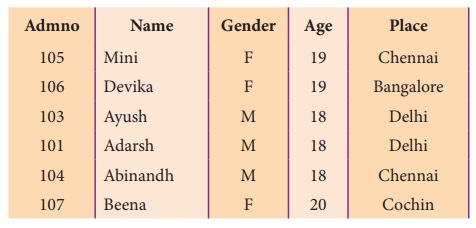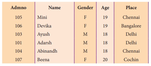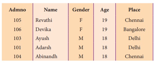 (gender), வயது (Age) போன்றவை எடுத்துக்கொள்ளலாம். Admno, Name, Gender, Age மற்றும்
