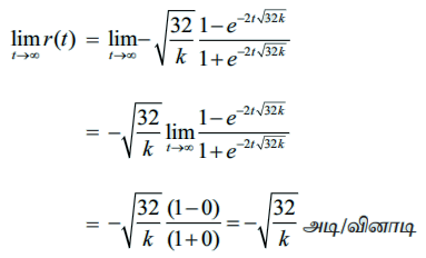 என வரையறுக்கப்பட்டுள்ளது. வேகம் அடி/வினாடியில் கணக்கிடப்படுகிறது. இங்கு k என்ற மாறிலி அந்தப் பொருளின் அளவு, வடிவம் மற்றும் காற்றின் அடர்த்தியைப் பொறுத்து உள்ளது. அந்தப் பொருளின் எல்லை வேகத்தினைக் காண்க. அதாவது,