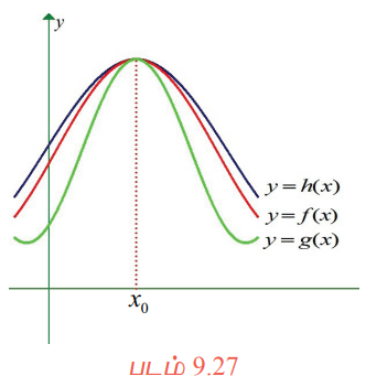 இத்தேற்றம் நெருக்குத் தேற்றம் (Squeeze Theorem) எனவும் அழைக்கப்படுகிறது. படம் 9.27− ல் உள்ளபடி f(x) என்ற சார்பின் வளைவரை y = f (x) மற்றும் y = g(x) என்ற வளைவரைகளுக்கு இடையில் அமைந்துள்ளது. குறிப்பாக x என்ற புள்ளியானது x0−ஐ நெருங்கும்போது f(x) ஆனது g(x) மற்றும் h(x)−க்கு இடையில் மிக நெருக்கமாக அமைகிறது. இப்போது x−ஆனது x0 −ஐ நெருங்கும்போது g மற்றும் h என்பவைகளின் எல்லைகள் lஆக இருப்பின் f−ன் எல்லையும் l−ஆக அமையும்.