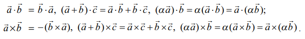 என்பன ஏதேனும் மூன்று வெக்டர்கள் மற்றும் α ஒரு திசையிலி எனில்,