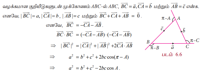 எடுத்துக்காட்டு 6.1 (கொசைன் சூத்திரம்) (Cosine formulae)