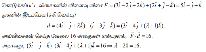 என்ற விசைகளின் செயல்பாட்டினால் நகர்த்தப்படுகிறது. அவ்விசைகள் செய்த வேலை 16 அலகுகள் எனில், λ−ன் மதிப்பைக் காண்க.