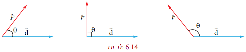 ஒரு விசை ஏற்படுத்தும் கோணம் குறுங்கோணம், செங்கோணம் மற்றும் விரிகோணம் எனில், அவ்விசை செய்யும் வேலை முறையே மிகை, பூச்சியம், மற்றும் குறை ஆகும்.