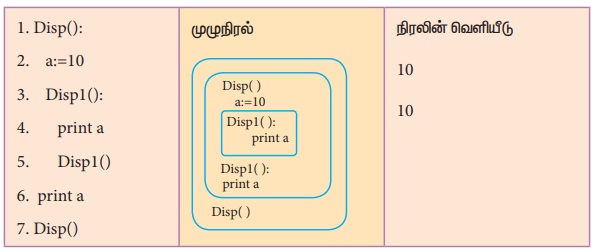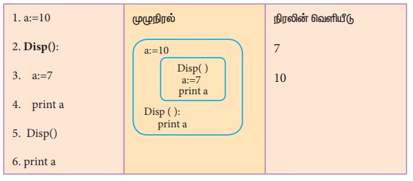 கணினி அறிவியல் - வரையெல்லை: பின்வரும் கேள்விகளுக்கு பதில் அளிக்கவும் | 12th Computer Science : Chapter 3 : Scoping