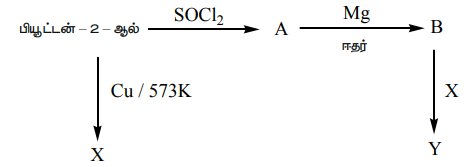 24. பின்வரும் வினை வரிசையில் A,B,X மற்றும் Y ஆகிய விளைபொருட்களைக் கண்டறிக.