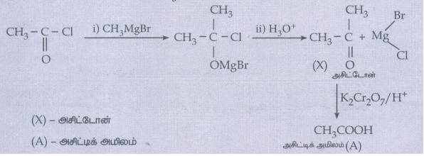 8. t - பியூட்டைல் ஆல்கஹாலை அமிலம் கலந்த டைகுரோமேட்டை பயன்படுத்தி கார்பனைல் சேர்மமாக ஆக்சிஜ னேற்றம் அடையச் செய்ய இயலுமா?