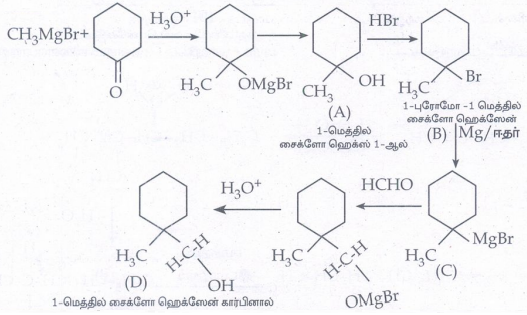 13. எத்தனால் மற்றும் 2 - மெத்தில் பென்டன் - 2 - ஆல் ஆகியனவற்றிலிருந்து 2 - ஈத்தாக்ஸி - 2 - மெத்தில் ‘பென்டேனைத் தயாரிக்கும் வில்லியம்சனின் தொகுப்பு முறைக்கான வேதிச் சமன்பாட்டினைத் தருக.
