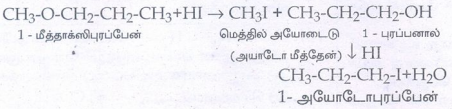 1. 1 - மீத்தாக்ஸிபுரப்பேனை அதிக அளவு HI உடன் வெப்பப்படுத்தும் போது உருவாகும் விளைபொருட்களை கண்டறிக. இவ்வினையின் வினைவழிமுறையினை குறிப்பிடுக.
