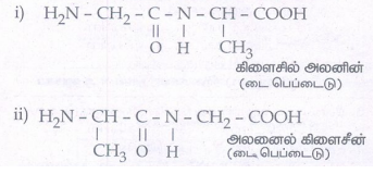 14. கிளைசின் மற்றும் அலனின் ஆகியவற்றிலிருந்து உருவாக வாய்ப்புள்ள அனைத்து டைபெப்டைடுகளின் வடிவங்களையும் வரைக.