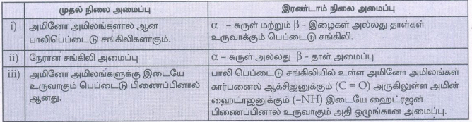 i) α. - சுருள் மற்றும் β - இழைகள் அல்லது தாள்கள் உருவாக்கும் பெப்டைடு சங்கிலி .
