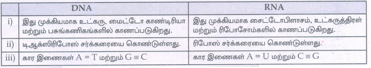 5. DNA மற்றும் RNA க்கு இடையே உள்ள ஏதேனும் மூன்று வேறுபாடுகளை எழுதுக.