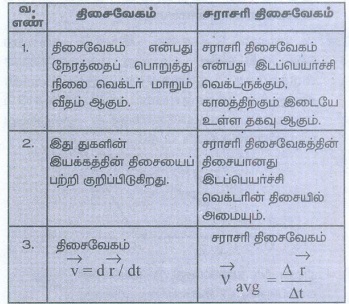 10. திசைவேகம், மற்றும் சராசரித் திசைவேகம் இவற்றிக்கிடையேயான வேறுபாடுகள் யாவை?