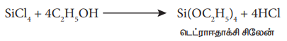 SiCl4 + 4C2H5OH → Si(OC2H5)4 + 4HCI டெட்ராஈதாக்சி சிலேன்