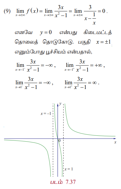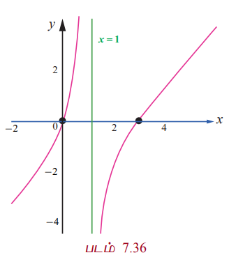 (6) lim x→1− x2−3x / (x−1) = +∞ மற்றும் limx→1+ x2−3x / (x−1) = −∞ என்பதால், x = 1 என்பது நிலைக்குத்து தொலைத் தொடுகோடு ஆகும்.