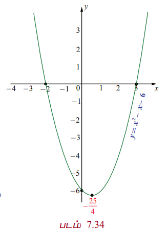 y = f (x) = x2 – x - 6 என்ற வளைவரையை வரைக.