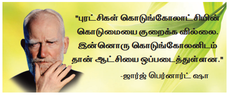 "புரட்சிகள் கொடுங்கோலாட்சியின் கொடுமையை குறைக்க வில்லை. இன்னொரு கொடுங்கோலனிடம் தான் ஆட்சியை ஒப்படைத்துள்ளன." -ஜார்ஜ் பெர்னார்ட் ஷா