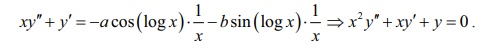 எனவே , y = a cos(log x) + b sin(log x) என்பது கொடுக்கப்பட்ட வகைக்கெழுச் சமன்பாட்டின் தீர்வாகும்.