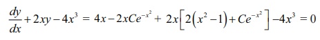 எனவே, கொடுக்கப்பட்ட சார்பு dy/dx + 2xy − 4x3 = 0 எனும் வகைக்கெழுச் சமன்பாட்டின் தீர்வாகும்.