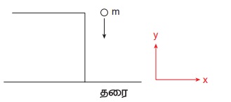 நாம் அறிந்தபடி, தடையின்றித் தானே புவியை நோக்கி விழும் பொருள் புவியீர்ப்பு விசையினால் ஒரு முடுக்கத்தைப்பெறும் அது புவியீர்ப்பு முடுக்கமாகும். g = 9.8 ms-2. படத்தில் உள்ளபடி நாம் தகுந்த ஆய அச்சுத் தொகுப்பினை தேர்வு செய்ய வேண்டும்.