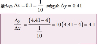 x1 = 2 மற்றும் x2 = 2.1 எனில் y1 = 4 மற்றும் y2 = 4.41 எனக் கிடைக்கும்.