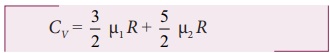 ஒரு மோல் ஈரணு வாயு மூலக்கூறின் பருமன் மாறா மோலார் தன்வெப்ப ஏற்புத்திறன் Cv = 5/2R μ2 மோல் வாயுவிற்கு,