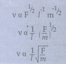3) அதிர்வடையும் கம்பியின் அதிர்வெண் (v) ஆனது i) அளிக்கப்பட்ட விசை (F) ii) நீளம் (l) iii) ஓரலகு நீளத்திற்கான நிறை (m), ஆகியவற்றைப் பொறுத்தது எனக் கொண்டால், பரிமாண முறைப்படி அதிர்வெண்