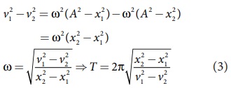 ஒரு துகளானது தனிச்சீரிசை இயக்கத்தை மேற்கொள்ளுவதாக கொள்வோம். x1 நிலையில் துகளானது v1 திசைவேகத்தையும் மற்றும், x2, நிலையில் v2, திசைவேகத்தையும் பெற்றிருப்பதாகக் கருதுவோம். அலைவு நேரம் மற்றும் வீச்சின் தகைவு