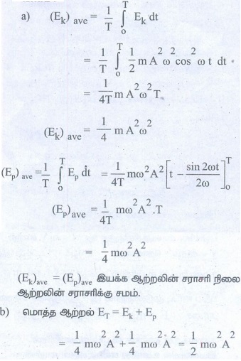 b) சராசரி நிலையாற்றல் = சராசரி இயக்க ஆற்றல் = 1/2 (மொத்த ஆற்றல்) எனக் காட்டுக.