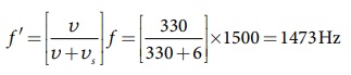கேட்பவரிடமிருந்து விலகி மலை ஒன்றை நோக்கிச் செல்லும் ஒலி மூலம் உமிழும் ஒலியின் அதிர்வெண் 1500 Hz, ஒலி மூலத்தின் திசைவேகம் 6 ms-1