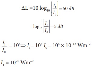 I1, என்பது 3.0 m தொலைவில் உள்ள ஒலிச்செறிவு என்க. அதன் மதிப்பு
