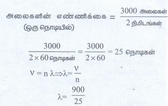 1. ஒர் ஊடகத்தில் ஒலியின் வேகம் 900 ms-1 ஊடகத்தில் ஓர் புள்ளியில் 2 நிமிடங்களில் கடக்கும் அலைகளின் எண்ணிக்கை 3000 எனில் அலைநீளத்தைக் காண்க?
